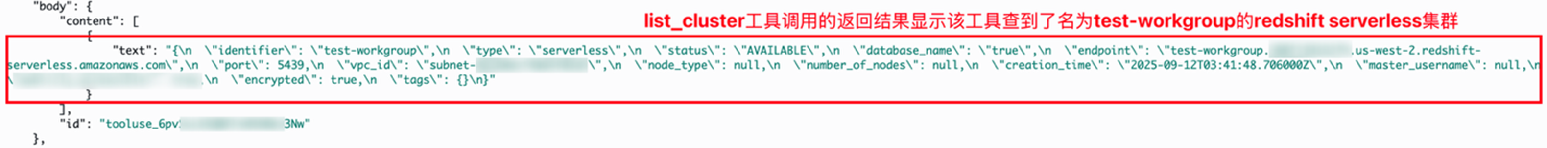 您可以根据以下日志内容分析详细了解到 Redshift MCP Server 中的工具被调用执行的具体逻辑。