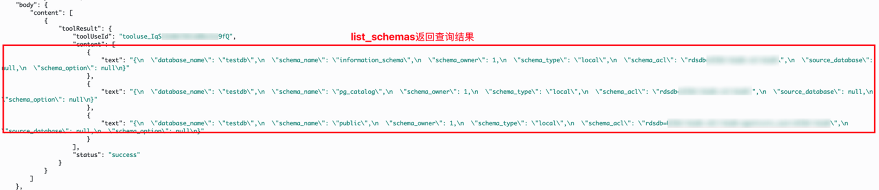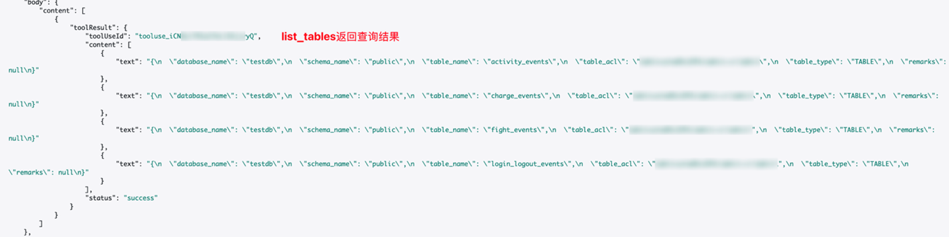 列出数据库:(主要使用list_databases工具)连接到选定的集群,查询系统视图发现所有可访问的数据库。