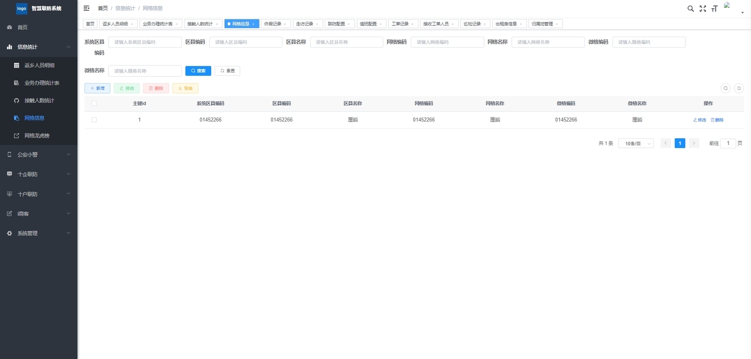 网格信息:展示网格化管理的相关信息,提高管理效率,推动基层治理向精细化、网格化延伸,提升治理覆盖面与响应速度。