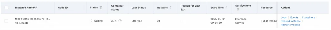 在没有开启相关 LLM 高可用能力情况下,用户并发流量最终超出 LLM 服务可承受能力而挂掉,重启时间在 3 分钟左右,此时间段内都无法提供服务。