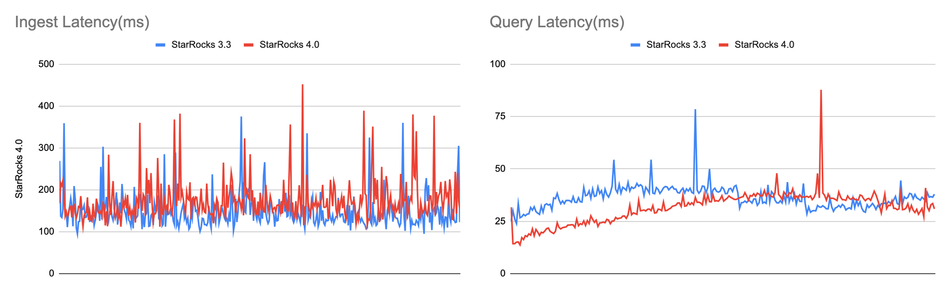 得益于这些改进,StarRocks 4.0 在实时导入与查询场景中表现更为出色。相比 3.3 版本,API 调用减少 70%–90%,导入与查询延迟几乎无变化,部分场景甚至更快。