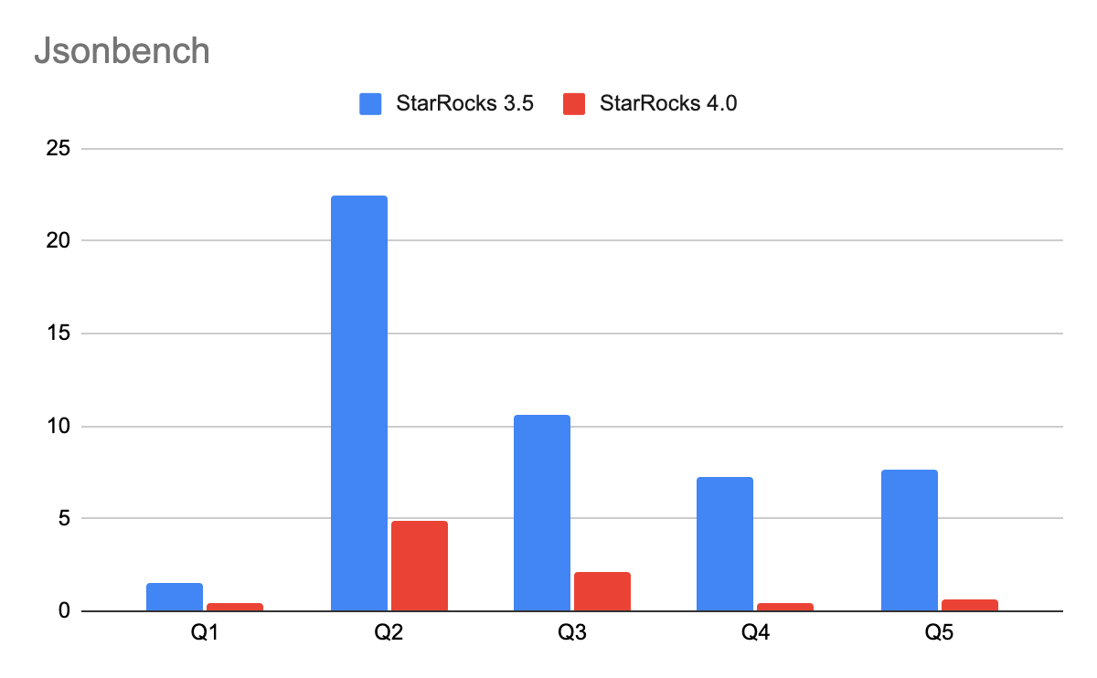 StarRocks 4.0 更进一步:正式将 JSON 升级为一等数据类型,并在执行层面加入了一系列深度优化,如索引、全局字典、延迟物化及谓词下推。让 JSON 可以享受和结构化列同样的加速手段:相比 3.5 版本,StarRocks 4.0 在 JSON 查询上的性能提升 3–15 倍。