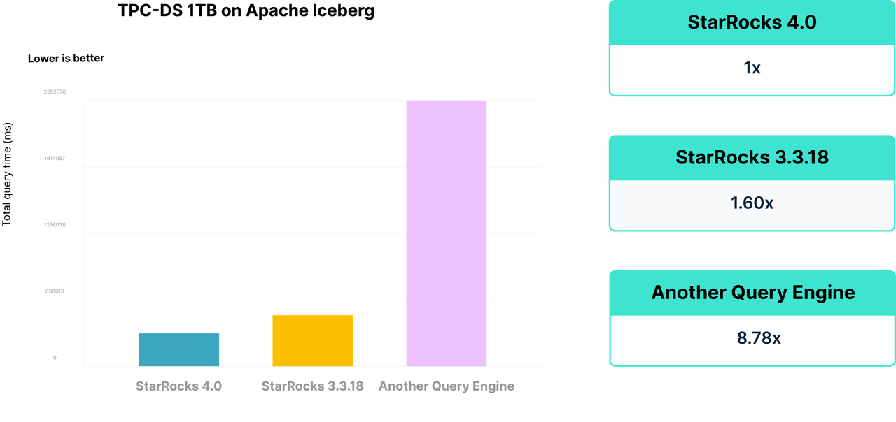 StarRocks 4.0 大版本将实现湖仓原生分析 ——将 StarRocks 多年来在数仓场景积累的优化经验,应用到开放格式之上,让用户基于 Iceberg 构建湖仓像使用 StarRocks 内表一样简单。在使用内表时,用户无需关注文件布局或统计信息,数据写入即可查询;而如今,这种“写入即查询”的体验,同样适用于 Iceberg 等开放格式。