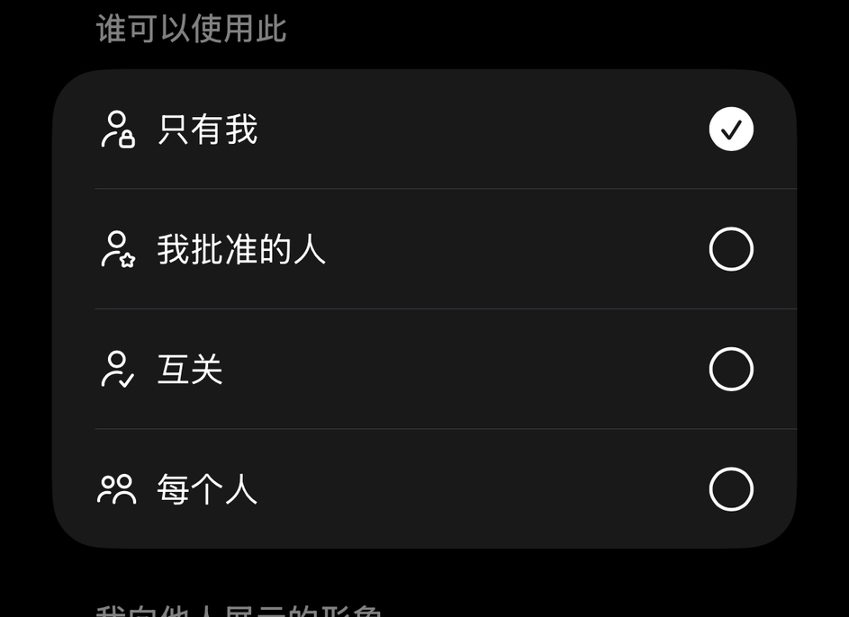 你可以根据自己的意愿,选择谁有权在视频创作中使用你的形象: