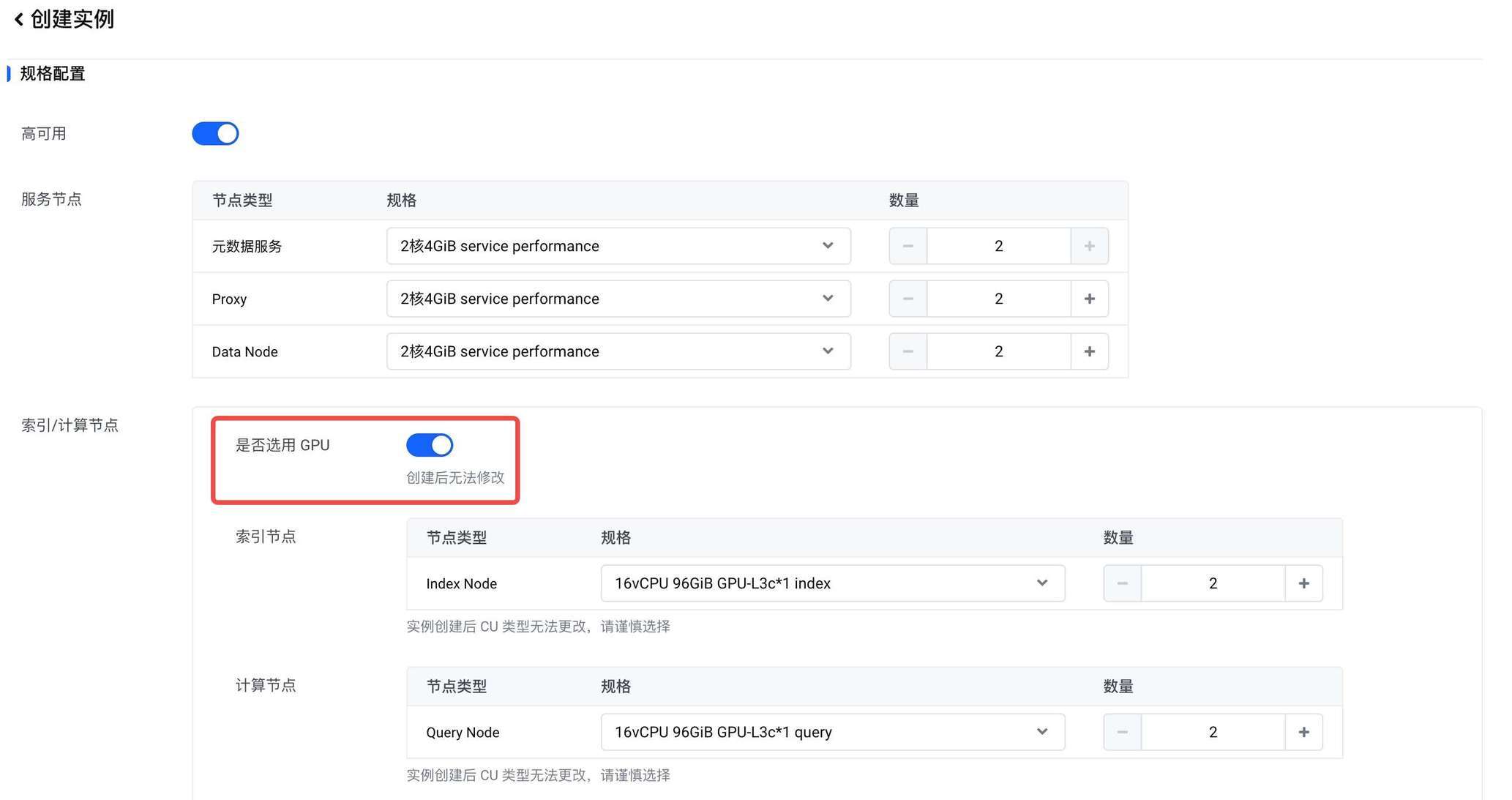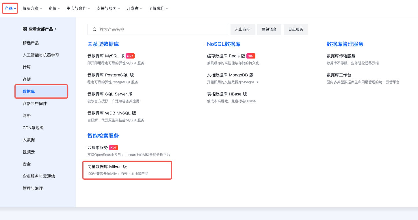 火山引擎 Milvus 上线的 GPU 规格为用户提供了开箱即用的 GPU 加速向量数据库服务。无需关心底层的驱动安装、环境配置和算法调优,即可享受 GPU 带来的极致性能。登录火山引擎官网,选择向量数据库 Milvus 版本,开启 GPU 选项即可体验: