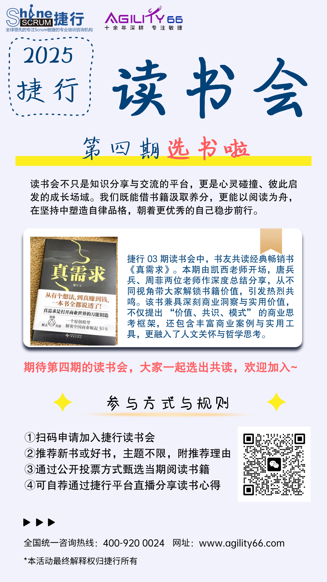 捷行常年独家提供线上线下CSM/A-CSM/CSP-SM/CSPO/A-CSPO/CAL/LeSS/SAFe等中英文授课的认证培训;并提供业务敏捷和敏捷领导力,企业文化重塑,Scrum敏捷软硬件开发,敏捷产品创新,敏捷项目管理等内训和工作坊辅导。