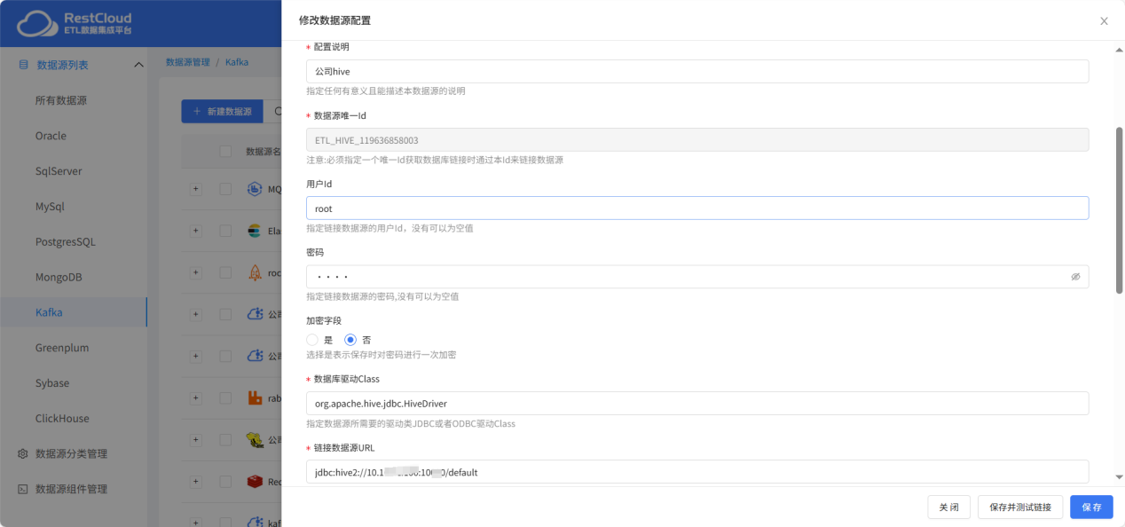 用同样的步骤再次配置一个目标端 hive 数据源的链接。