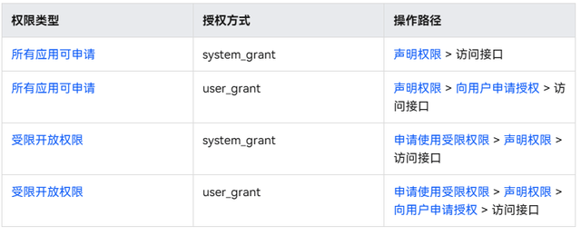 包括两种授权方式,分别是 system_grant(系统授权) 和 user_grant(用户授权)。