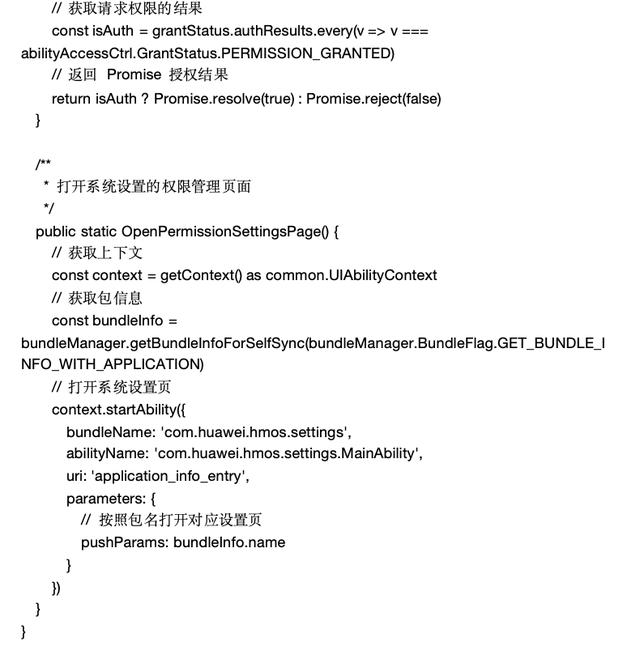 · 打开系统设置的权限管理页面(OpenPermissionSettingsPage)