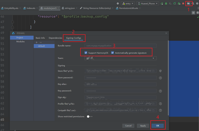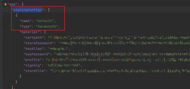 · 在项目的 build-profile.json5 文件下,查看 signingConfigs 下是否签名成功