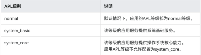 一共有三个等级:normal、system_basic、system_core。权限等级依次提高。