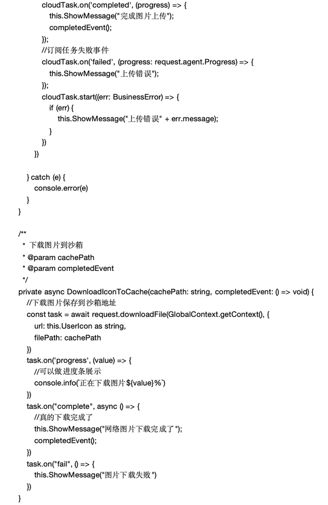 · 将头像文件从临时链接下载到本地沙箱,再从沙箱中将文件上传到云存储。