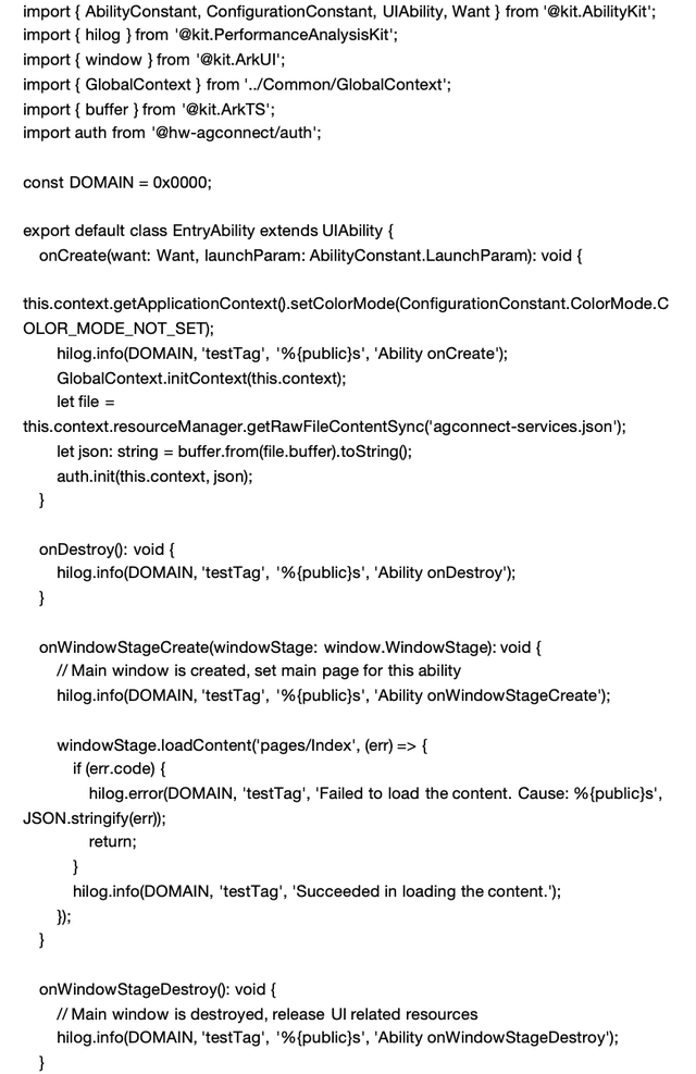 · 在 Ability 的 onCreate 方法中初始化,主要代码如下展示