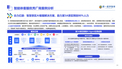 在优秀厂商案例部分,合力亿捷在文旅行业的规模化落地实践被重点收录。报告展示了某 5A 景区基于合力亿捷构建的智能体客服系统所实现的成效: