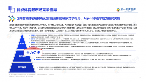 近日,第一新声智库正式发布《2025 年中国智能体客服市场发展研究报告》。该报告基于连续 19 轮 AI 产业调研、超 700 场专家访谈及多行业深度调研,系统呈现了智能体客服的技术演进、市场格局、典型实践与未来趋势,并首次从行业视角明确中国智能体客服厂商的竞争格局与梯队划分。