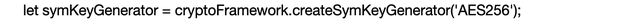在这一步中,我们使用 createSymKeyGenerator 函数并传入字符串参数“AES256”,表示我们要创建一个密钥算法为 AES、密钥长度为 256 位的对称密钥生成器。这一步是根据我们之前提到的字符串参数承载密钥规格的方式来指定所需的密钥类型。
