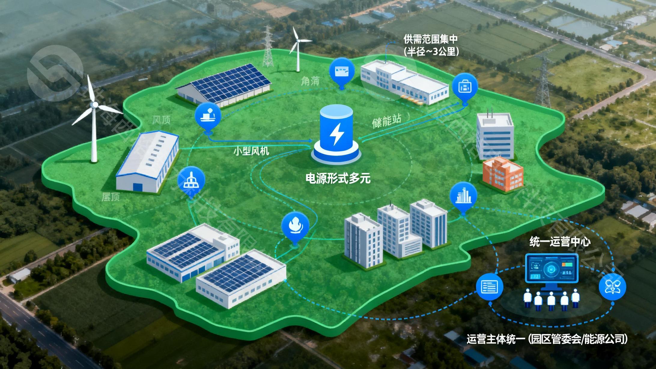 运营主体统一:通常由园区管委会或第三方能源服务公司(ESCO)统一规划、建设和运营,负责绿电生产设备的运维、用户用电调度及电费结算,避免多主体协调难题。
