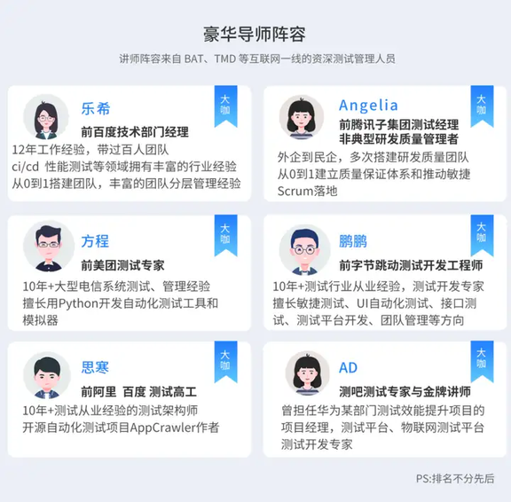 为了帮助更多的测试工程师获得这种职业优势,我们制定了一个为期 4 个月的成长计划,从测试开发技术能力、沟通表达能力、学习能力、思考力、认知升级等几个维度,借助线下授课、小班私教、案例拆解等模式,全面提升你的职业素养。