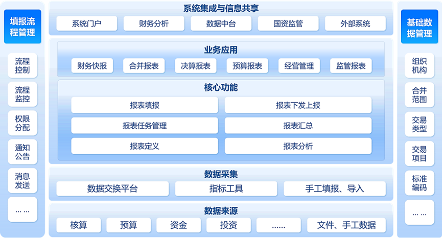 在应用层,平台能够生成满足不同需求的报表类型,无论是用于内部经营决策的合并报表、预算执行分析报表,还是用于满足国资委、财政部等外部机构监管要求的决算报表,都能高效产出,确保内外数据口径的一致性。