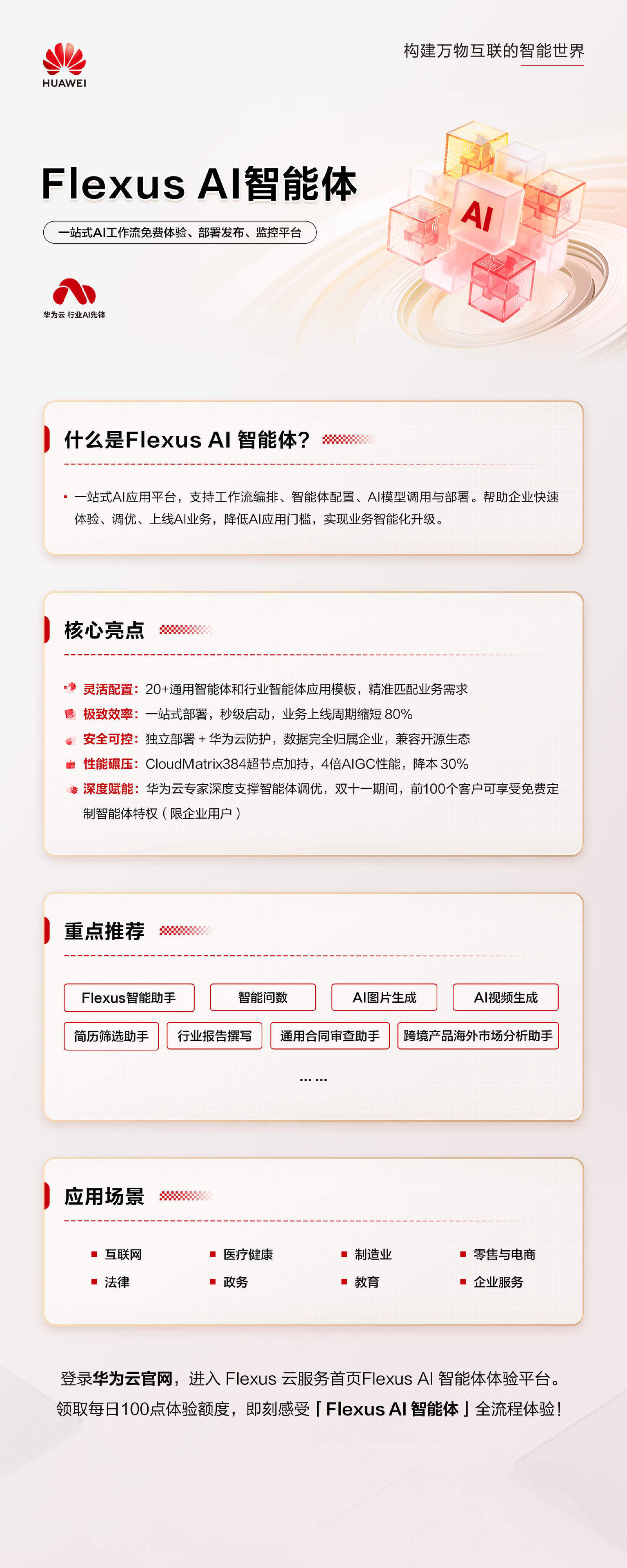 立即访问华为云官网,搜索"Flexus AI 智能体",开启你的第一个 AI 工作流。