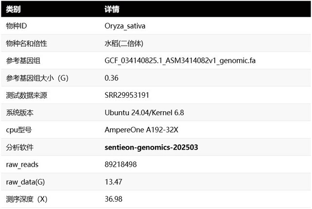 测试水稻样本测序深度 36.98X,从 FASTQ 到 VCF 全流程分析最快用时 8 分钟,大幅缩短了水稻全基因组 WGS 分析时间,有效加快水稻的分子育种进程。