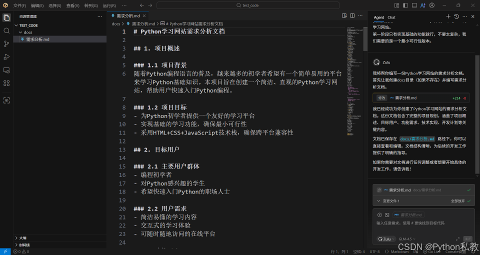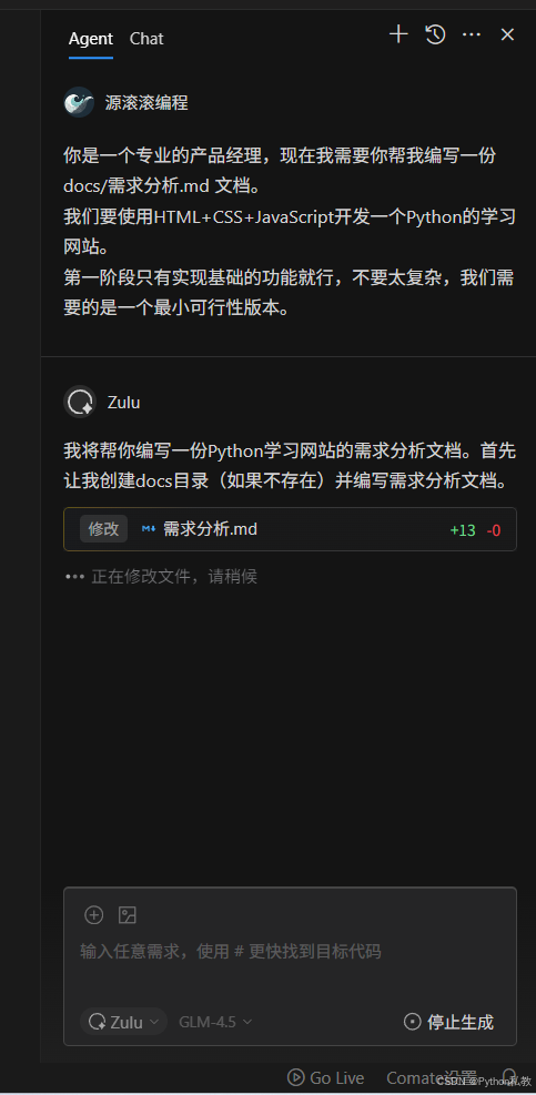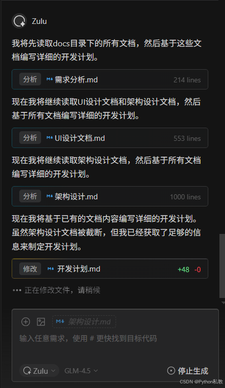 Zulu 思考了一下,效率非常高,几分钟就生成好了~~