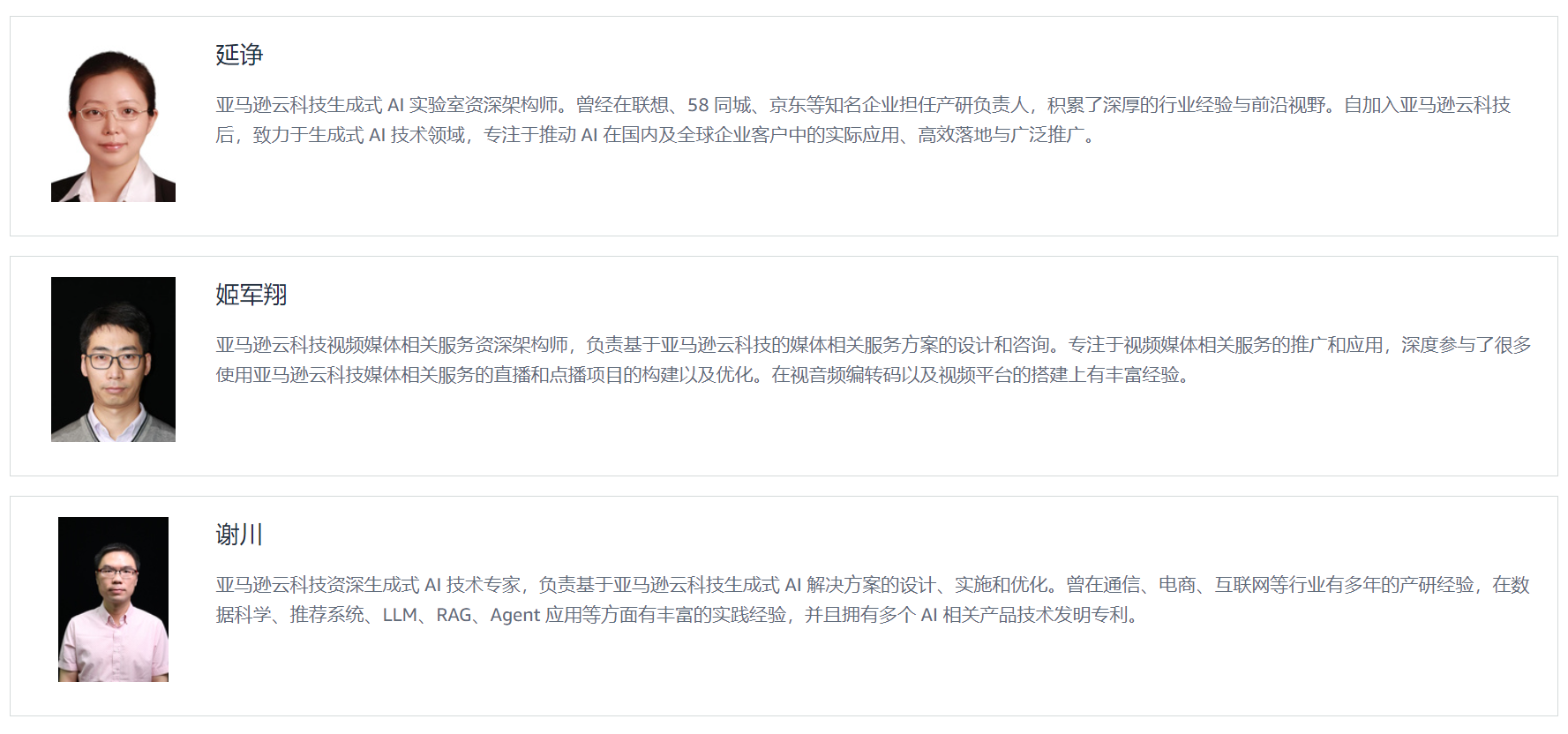 *前述特定亚马逊云科技生成式人工智能相关的服务目前在亚马逊云科技海外区域可用。亚马逊云科技中国区域相关云服务由西云数据和光环新网运营,具体信息以中国区域官网为准。