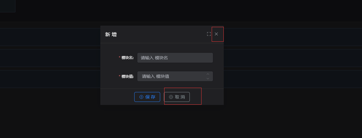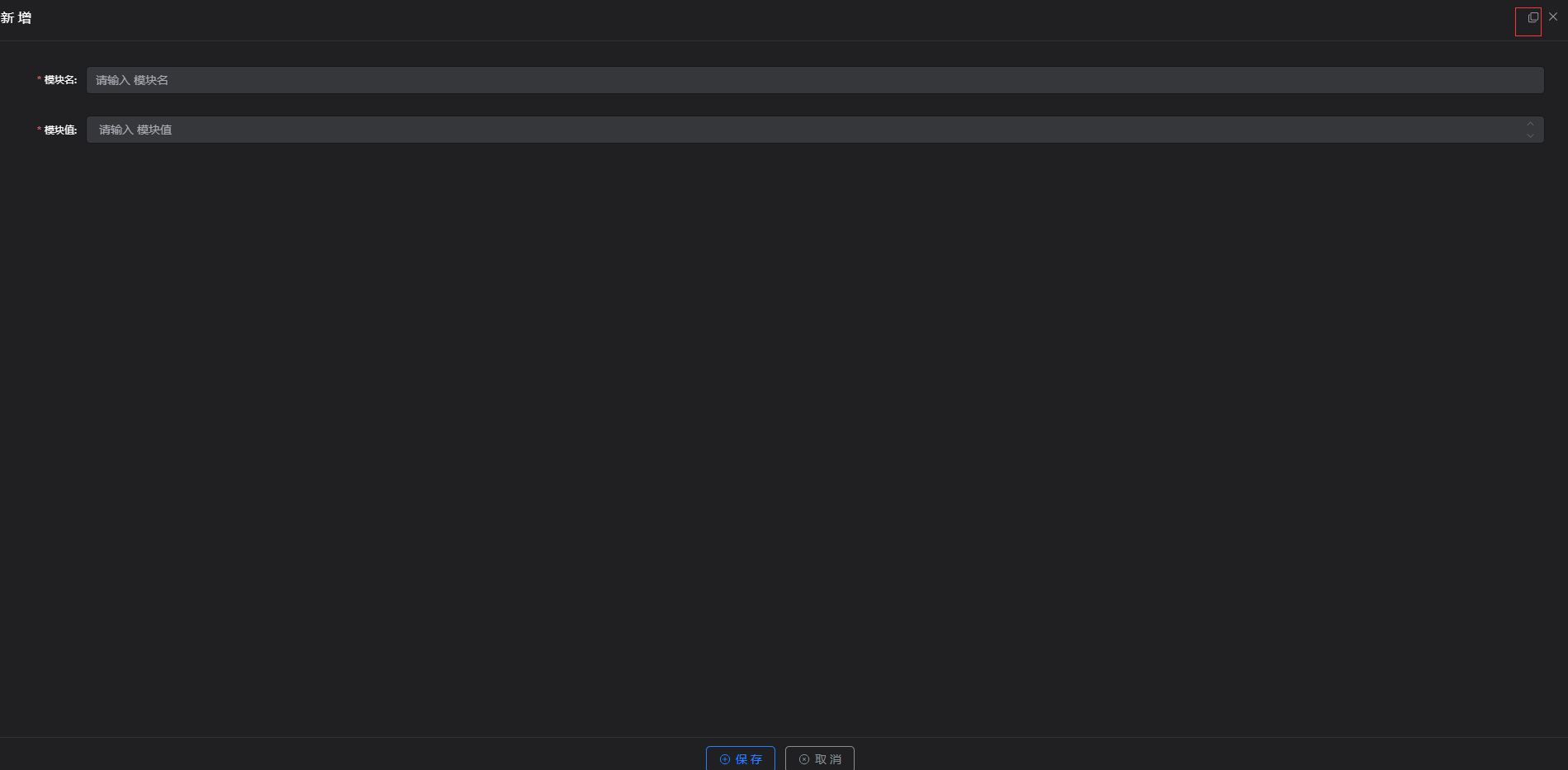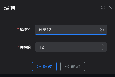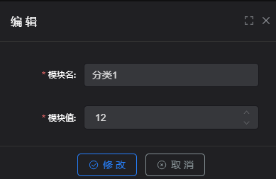 点击创建分类,弹窗展示信息填写框,模块名及模块值为必填项(注:模块值不允许重复)
