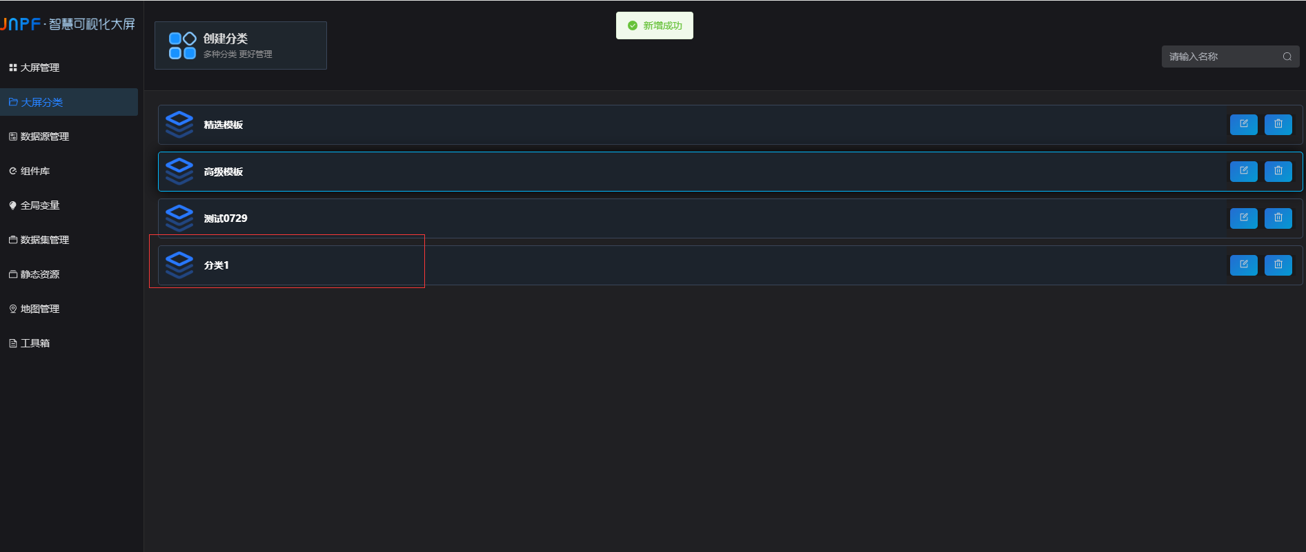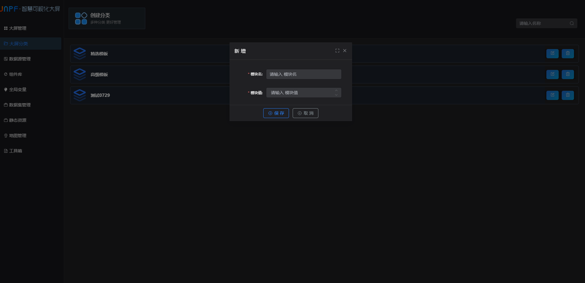 如果需要批量管理分类、设置分类权限等进阶功能,或遇到模块值重复报错等问题,欢迎在评论区交流~关注我,持续分享 JNPF 工具高效使用技巧,让大屏管理更省心!