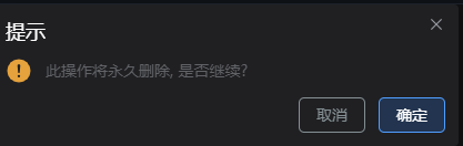 点击删除按钮,展示删除提示框,点击取消,取消删除操作,点击确定,分类删除成功