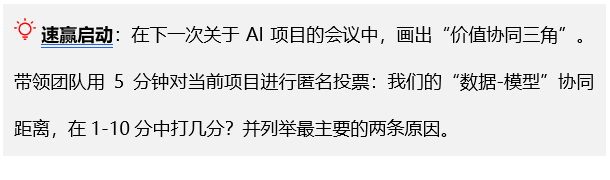 这句话如一道闪电,击中了我这个数据从业者。环顾当下如火如荼的 AI 浪潮,无数企业投入巨资引入最先进的 AI 模型,却常常收获寥寥。这不正像只强调学校教育,却忽视了家庭教育的学渣培养模式吗?由此,一个旨在解释 AI 价值核心的 “价值协同三角”模型 在我脑海中清晰起来。
