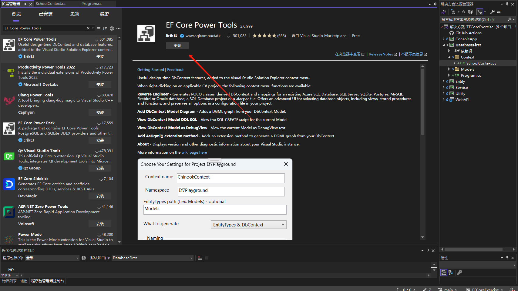EF Core Power Tools 扩展插件安装