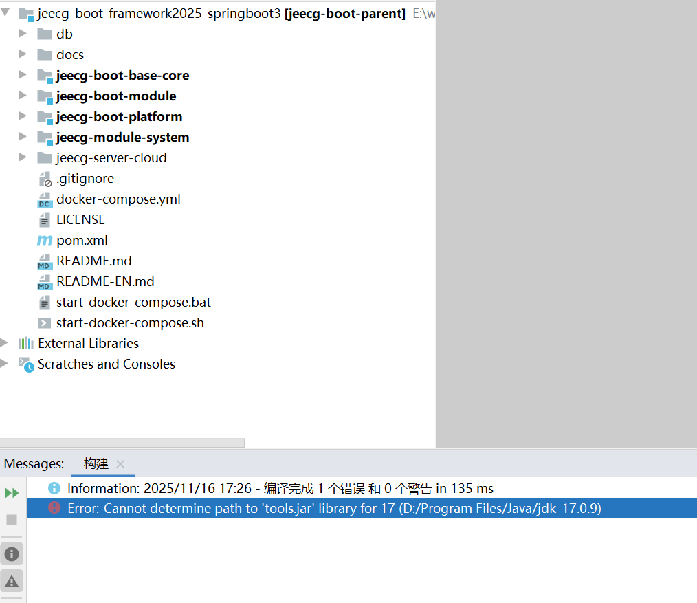 这是因为 JDK 9 以后没有 tools.jar,而老版本 IDEA 还依赖这个文件,导致构建功能不能正常用。