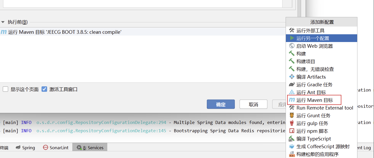 将构建步骤替换为 Maven 目标,输入命令:clean compile