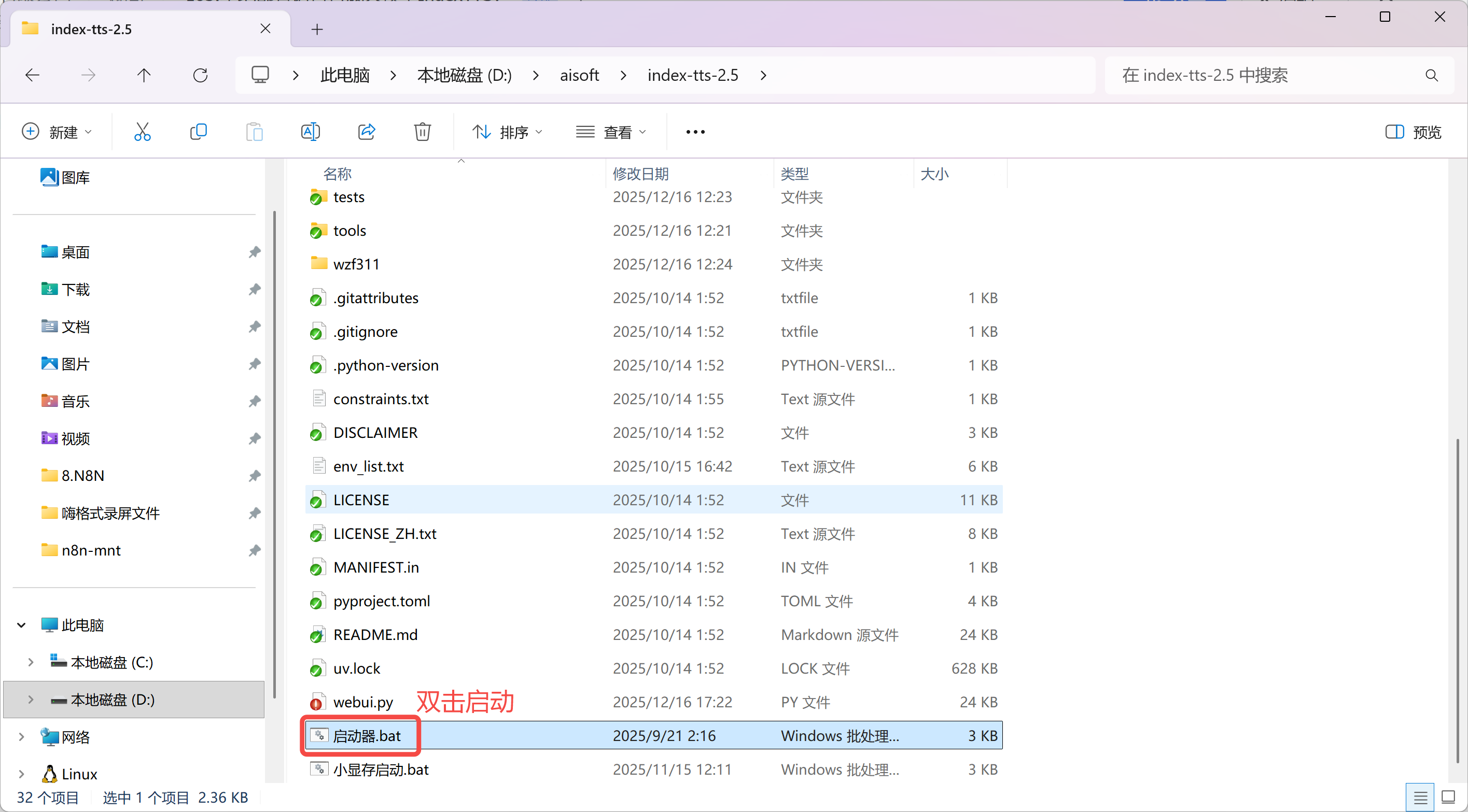 进入文件夹,找到并双击 “启动器”。