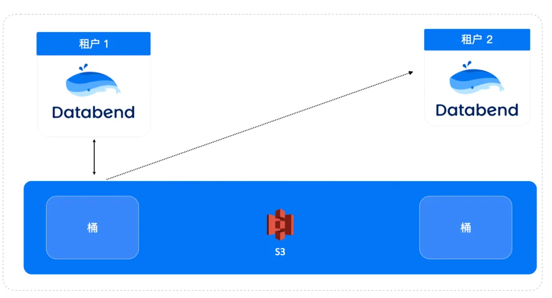 在 Databend 因为是存储分离架构,数据和计算分离,Databend 在对象存上也持久化了每个表对应的源数据,这样可以让该表非常容易被平台中其它租户或是用户使用,从而减少了数据搬家的开销。