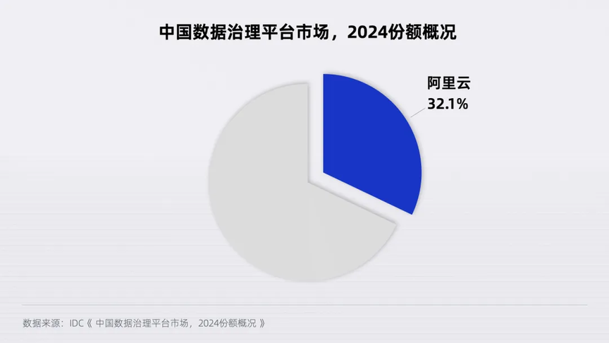 同期,IDC 还发布了《中国数据治理市场份额,2024:企业走向多模态数据统一管理》报告,阿里云在数据质量、元数据管理、数据资产价值挖掘方面具备显著优势,以 32.1%的份额连续四年蝉联第一。