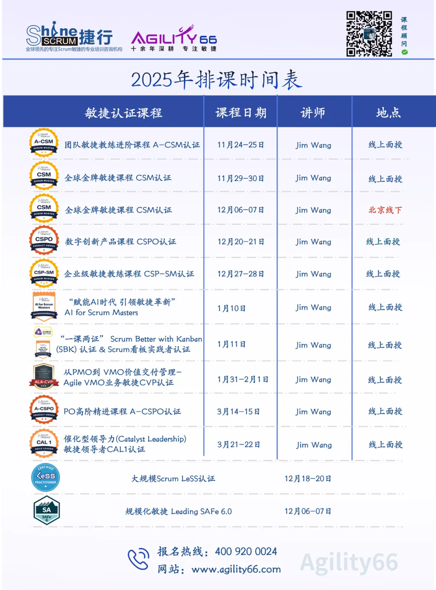 8 年以上敏捷领导力(CAL 1)课程教学探索和实践。