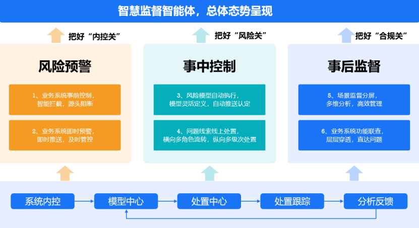 在数字化监管已成必然趋势的今天,穿透式监管产品不仅是企业响应政策要求、确保合规经营的“刚需工具”,更是提升内部监管效率、筑牢经营风险防线的“核心支撑”。对企业监管部门来说,产品的模型配置可灵活适配不同企业的监管逻辑,无需复杂开发就能快速调整功能;开放的架构设计也能顺畅对接现有系统,大幅降低落地成本。对企业管理层而言,实时化、可视化的监管看板能直观呈现全企业风险态势,为科学决策提供精准支撑。