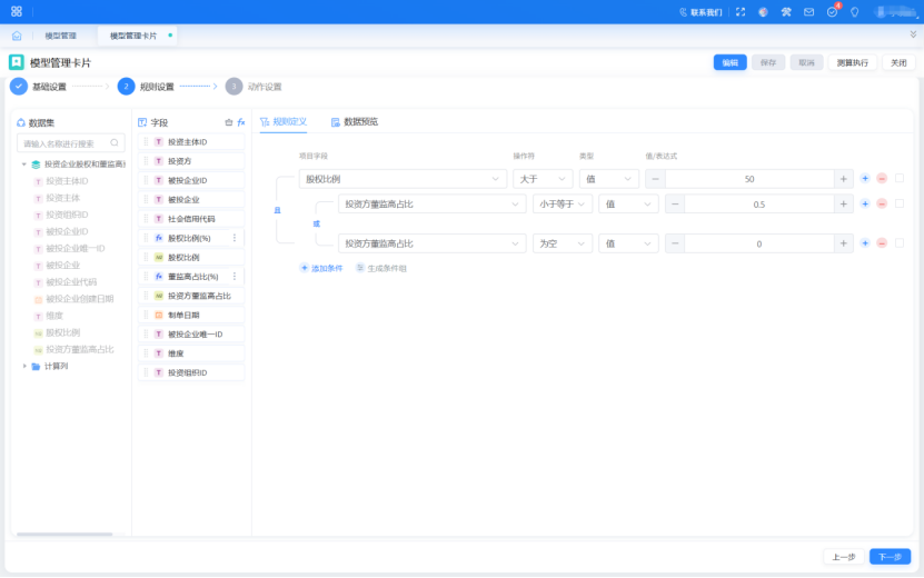 事前预警:基于模型规则实时监测风险,例如当企业资产负债率接近监管红线时,系统自动推送预警信息,并关联历史债务数据,辅助决策;
