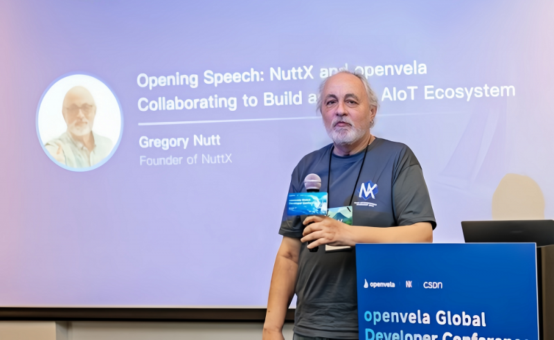 大会开场,NuttX 创始人 Gregory Nutt 发表题为《NuttX 与 openvela 携手构建开放 AIoT 生态系统》的演讲,深度解读与 openvela 在 AIoT 领域的生态协作路径,并对双方的合作表示高度认可:“非常开心 openvela 能够采用 NuttX 操作系统,我认为这对我们双方来说都是一件双赢的事——它让 openvela 成为了更出色的平台,同时也助力了 NuttX 的发展。”