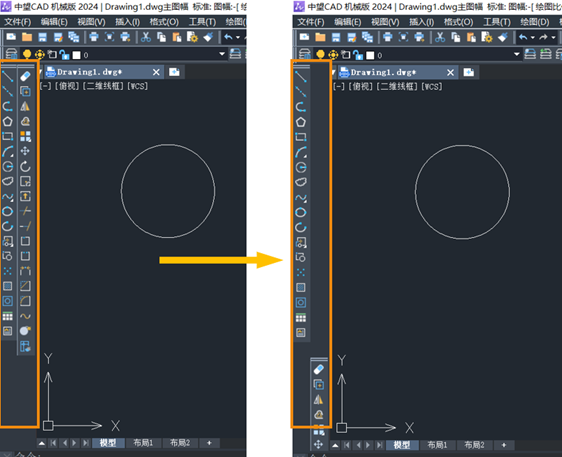 这是因为进入中望CAD块编辑后,会生成一个块编辑的专用工具条,而这个工具条会影响原本的工具条排布。