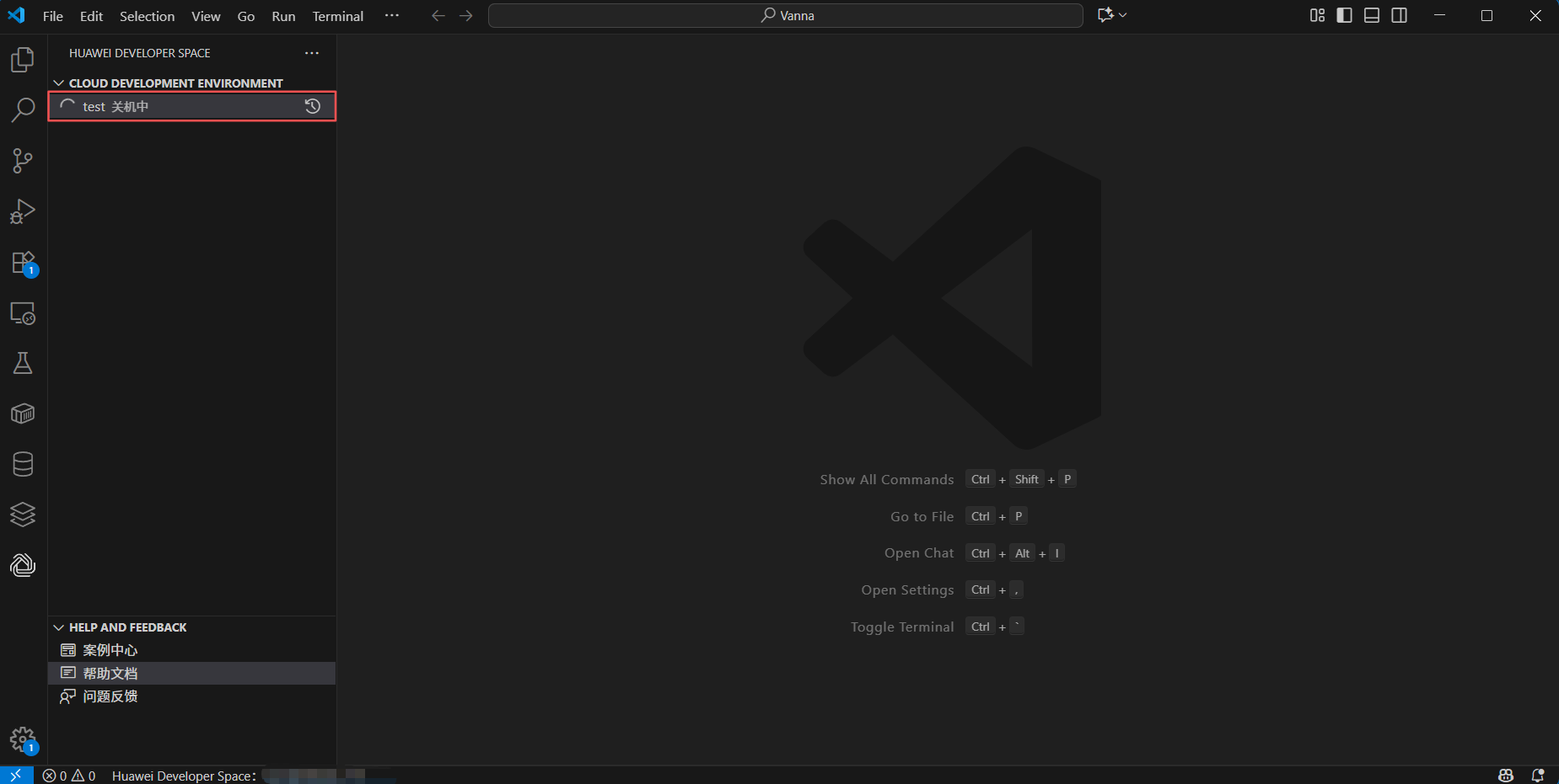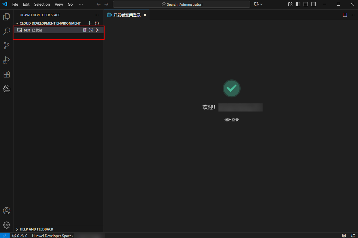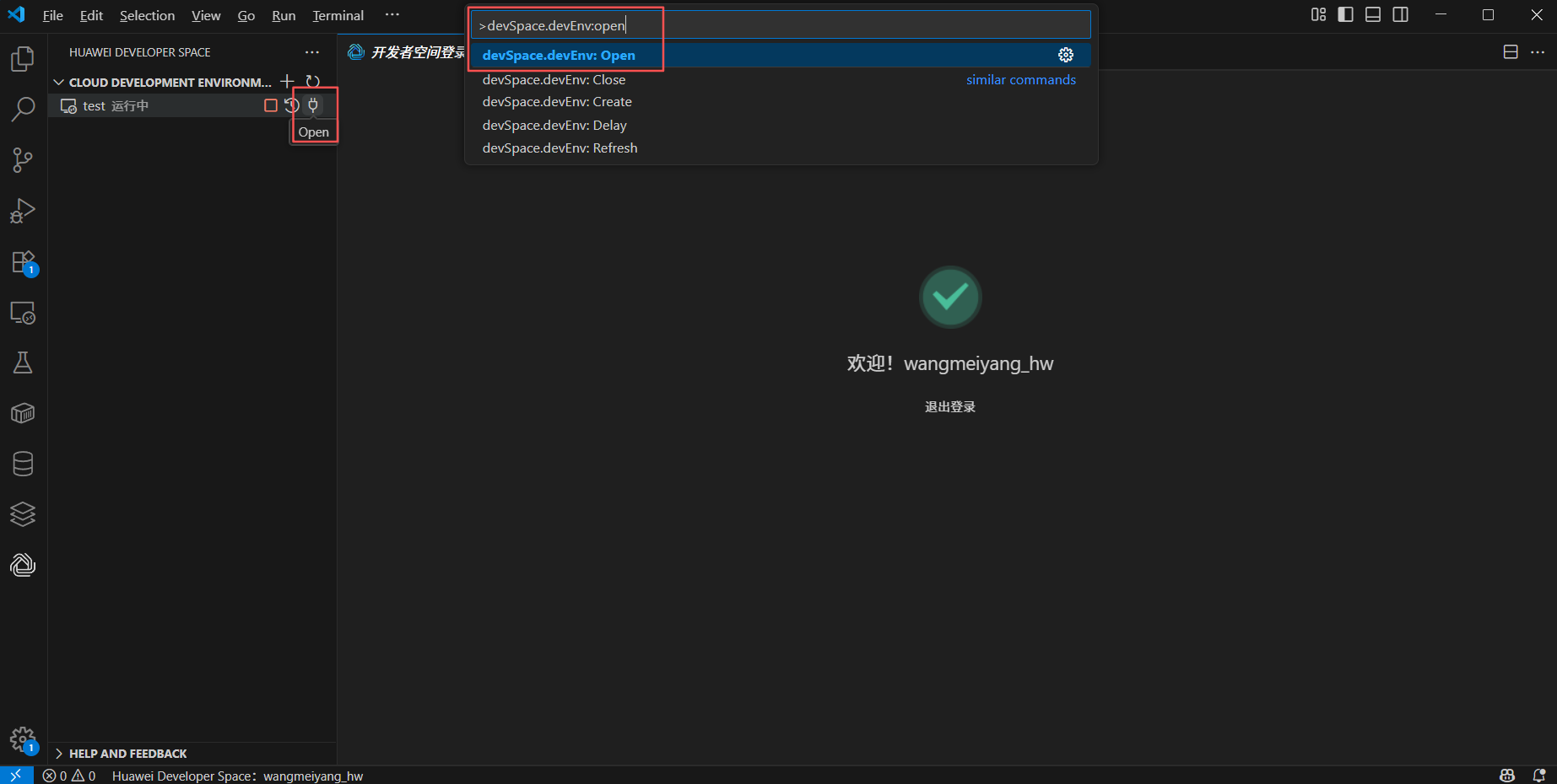 PC 本地通过 VS Code 安装 Huawei Developer Space 插件,远程连接操作云开发环境(容器)的创建、开机、关机、延时、删除等操作。