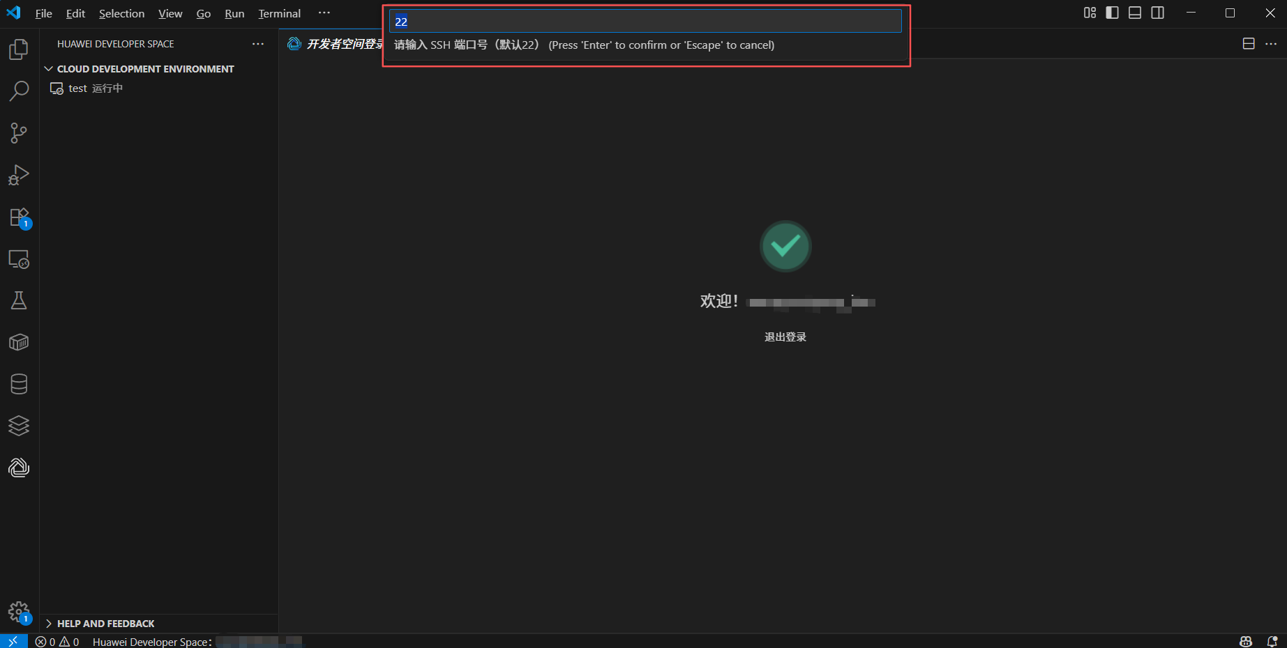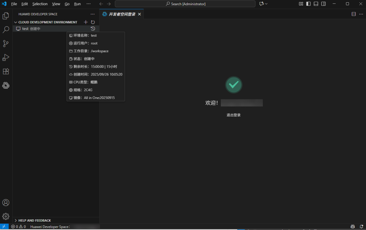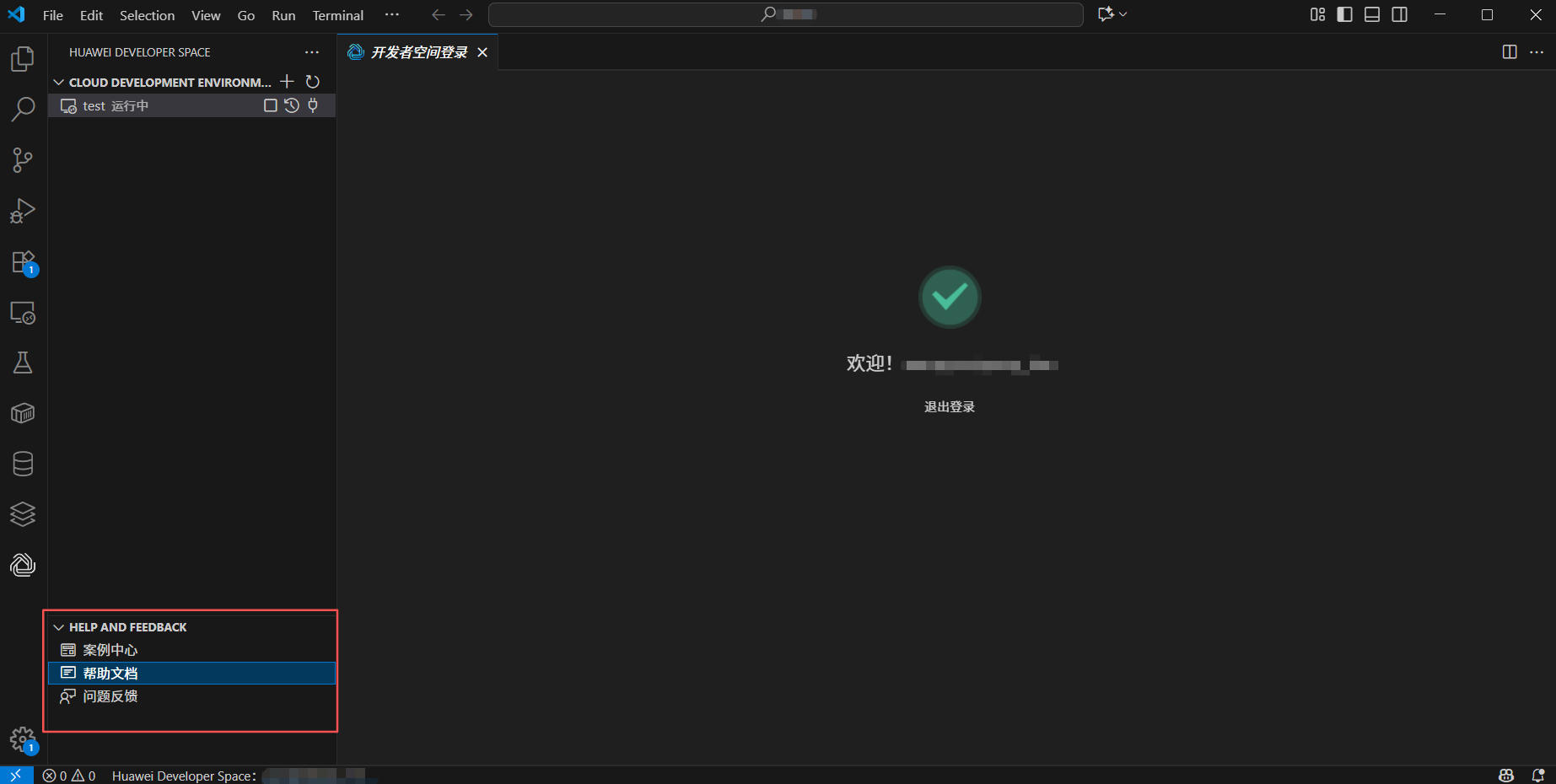 前提环境:Google 浏览器、Visual Studio Code 1.104.1、云开发环境(容器)“test”(参考“二、云开发环境(容器)操作指导”中“1. 创建云开发环境(容器)”创建)