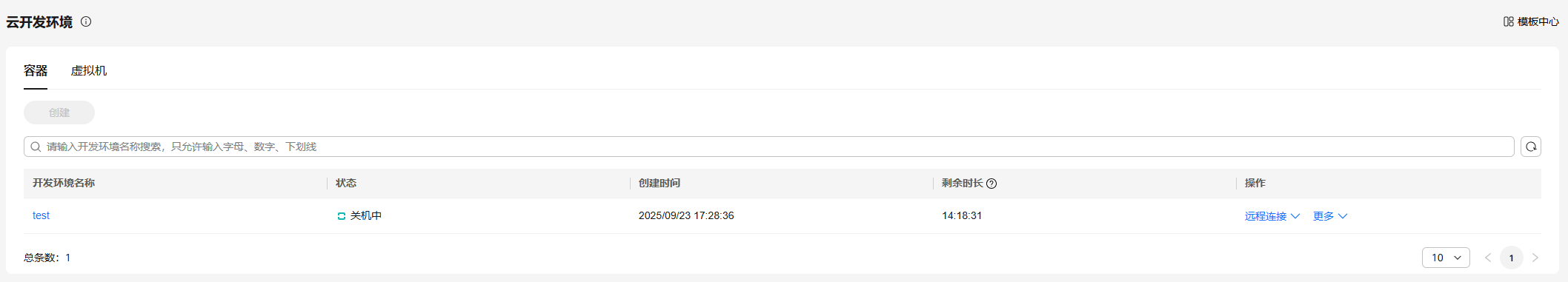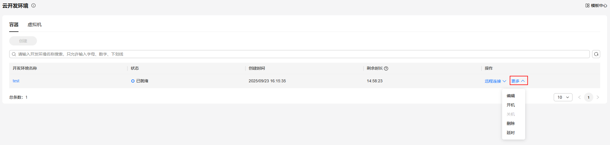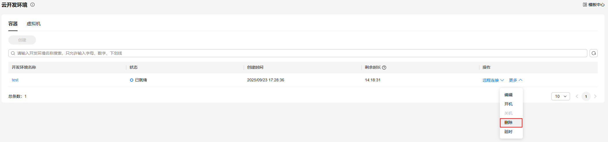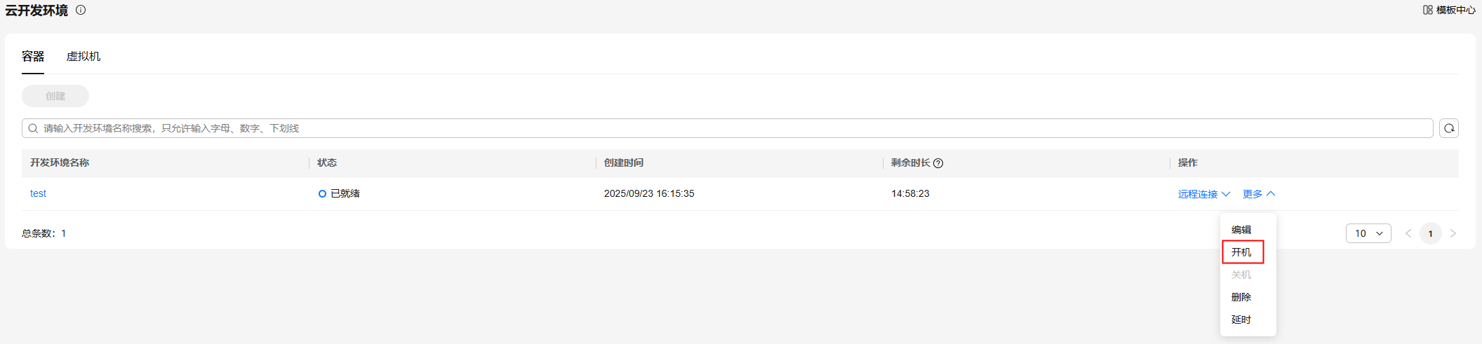 浏览器登录华为开发者空间开发平台 - 云开发环境(容器)平台,web 端实现容器的创建、编辑、开机、关机、延时、删除等操作;