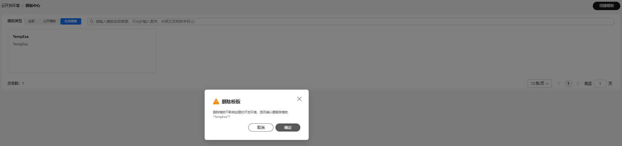 私有模板:自行创建的私有模板,具体创建步骤参见“3. 创建模板”。