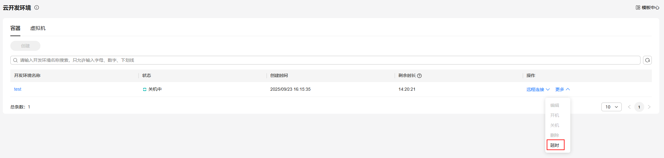 云开发环境(容器)无论在已就绪和运行中等持久态,亦或在创建中、开机中、关机中等流转状态中均可进行延时操作。
