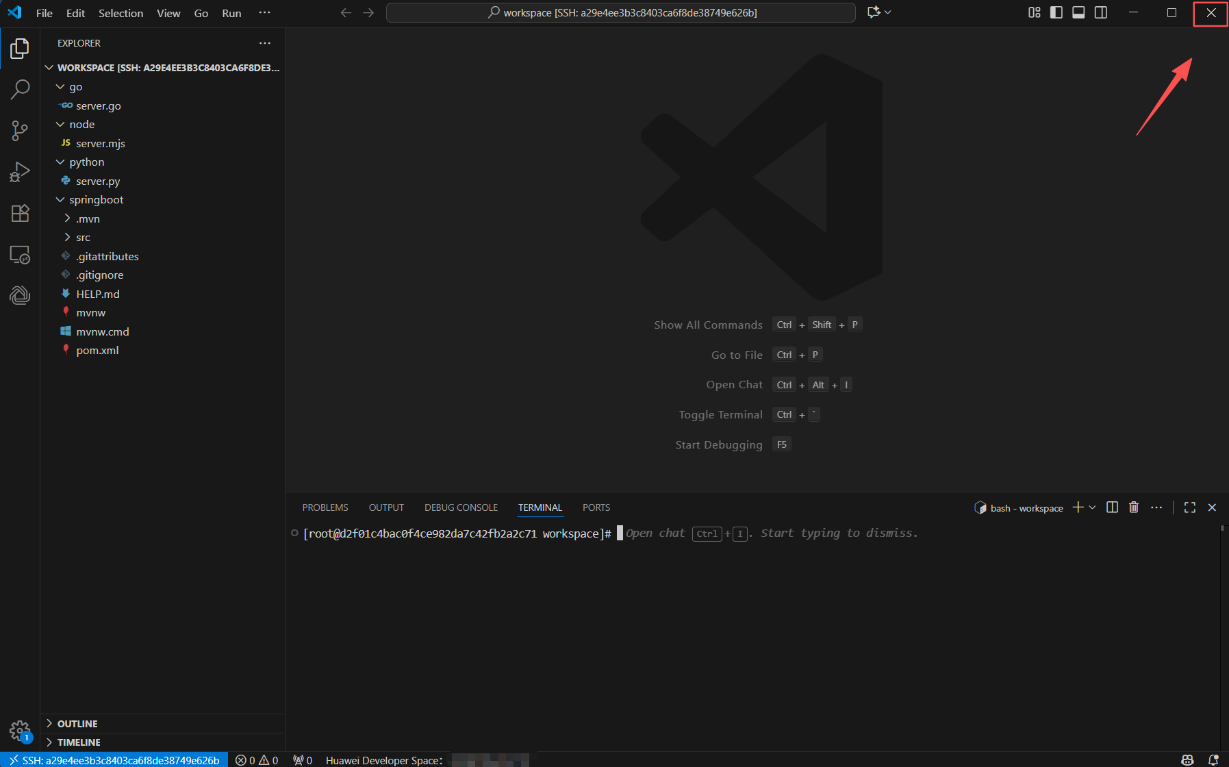 直接关闭 Remote SSH 远程连接窗口,则远程连接通道被同时关闭。