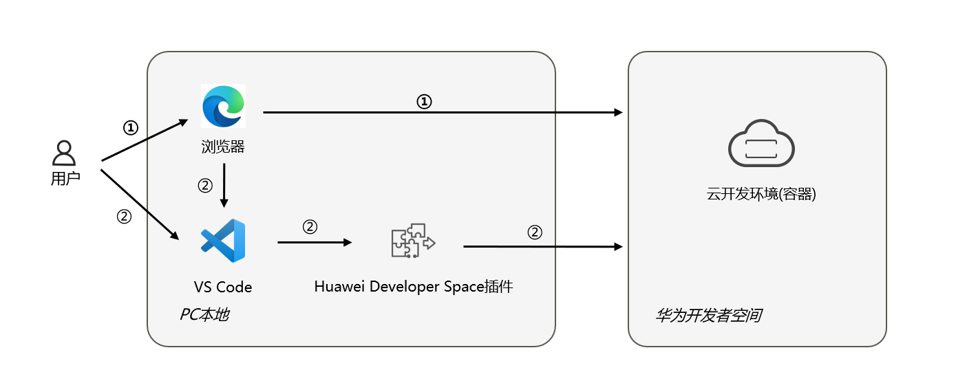 华为开发者空间 - 云开发环境(容器)支持 VS Code 等 IDE 远程连接。