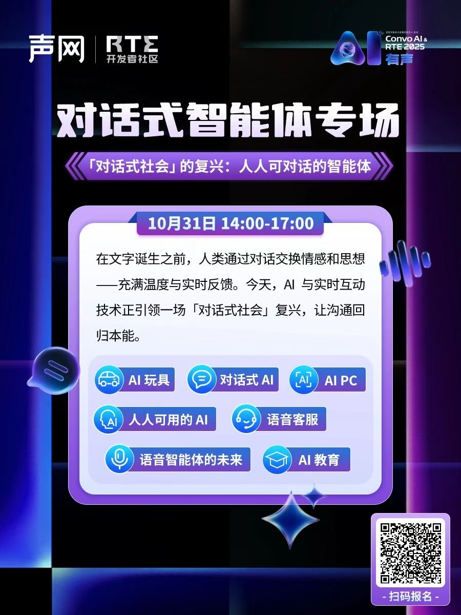 ✌与一线技术专家深度交流,掌握 RTE 与对话式 AI 的最新动向与技术实践,把握 2026 技术风向标